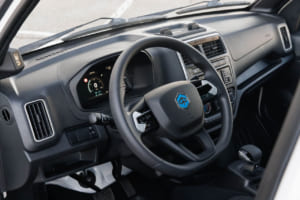 また、ドライバーの労働環境改善にも力が入れられている。インテリアは刷新され、デジタルメータークラスターやタッチスクリーンラジオ、電動格納ミラーなどの快適装備が充実している。特に注目すべきは電動エアコンとヒーターで、これらはエンジン(モーター)が停止している状態でも稼働可能であり、配送の待機時間などでも快適な室内環境を維持できる。