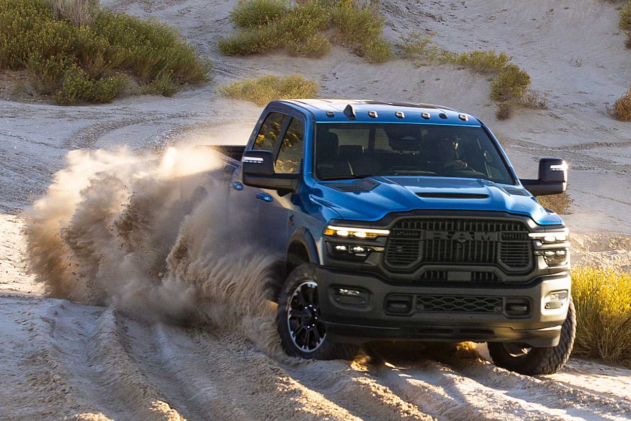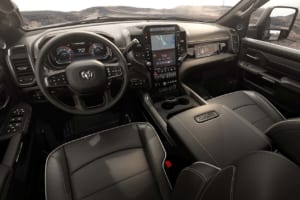 エクステリアでは、スポーツパフォーマンス・フードや専用のベッドデカール、サテンブラックの「カミンズ」バッジなどが採用され、アグレッシブなスタイルを演出。インテリアにおいてはヘビーデューティー・セグメント中最もプレミアムな空間が目指されており、標準でシートヒーターが付くベンチシートのほか、Level 2エクイップメント・グループを選択すれば、レザー仕上げのタッチポイントや、クラス最高の14.5インチUconnect 5タッチスクリーン、Harman Kardon製17スピーカー・オーディオシステムといった豪華装備が追加可能だ。
