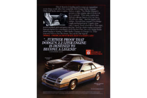 1970年代に入り、フォードとの協力関係が一段落した後も、シェルビーの情熱が衰えることはなかった。かつての盟友リー・アイアコッカのフォードからクライスラーへの移籍に伴い、その関係は同社のダッジ・ブランドとのコラボレーションとして結実。チャージャーやデイトナなどいくつかの車種をベースに、彼自身がチューンを行ったモデルや、シェルビーのパーツを装着したモデルが、1980年代に発売されている。