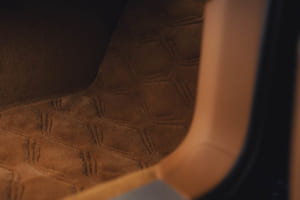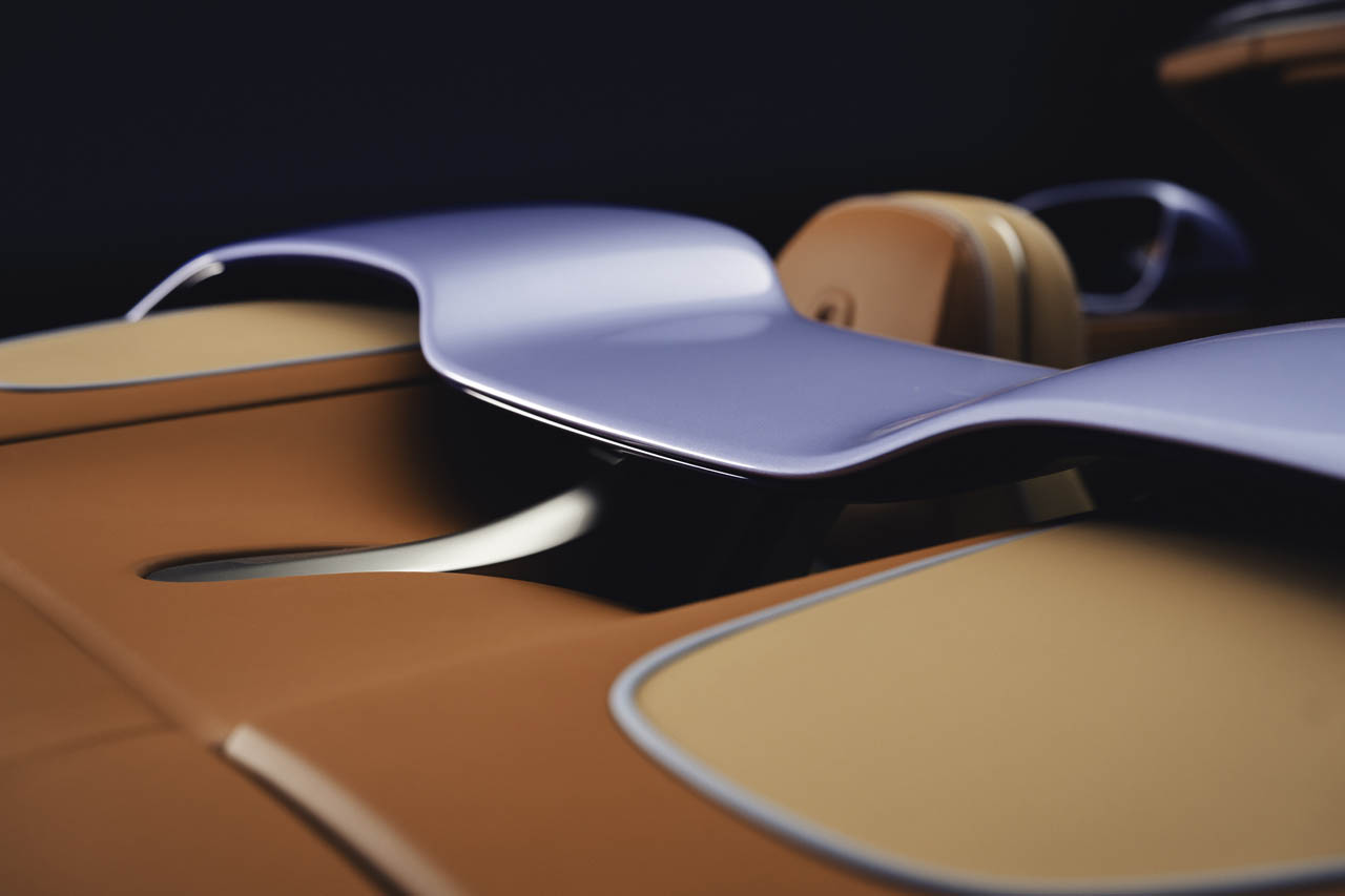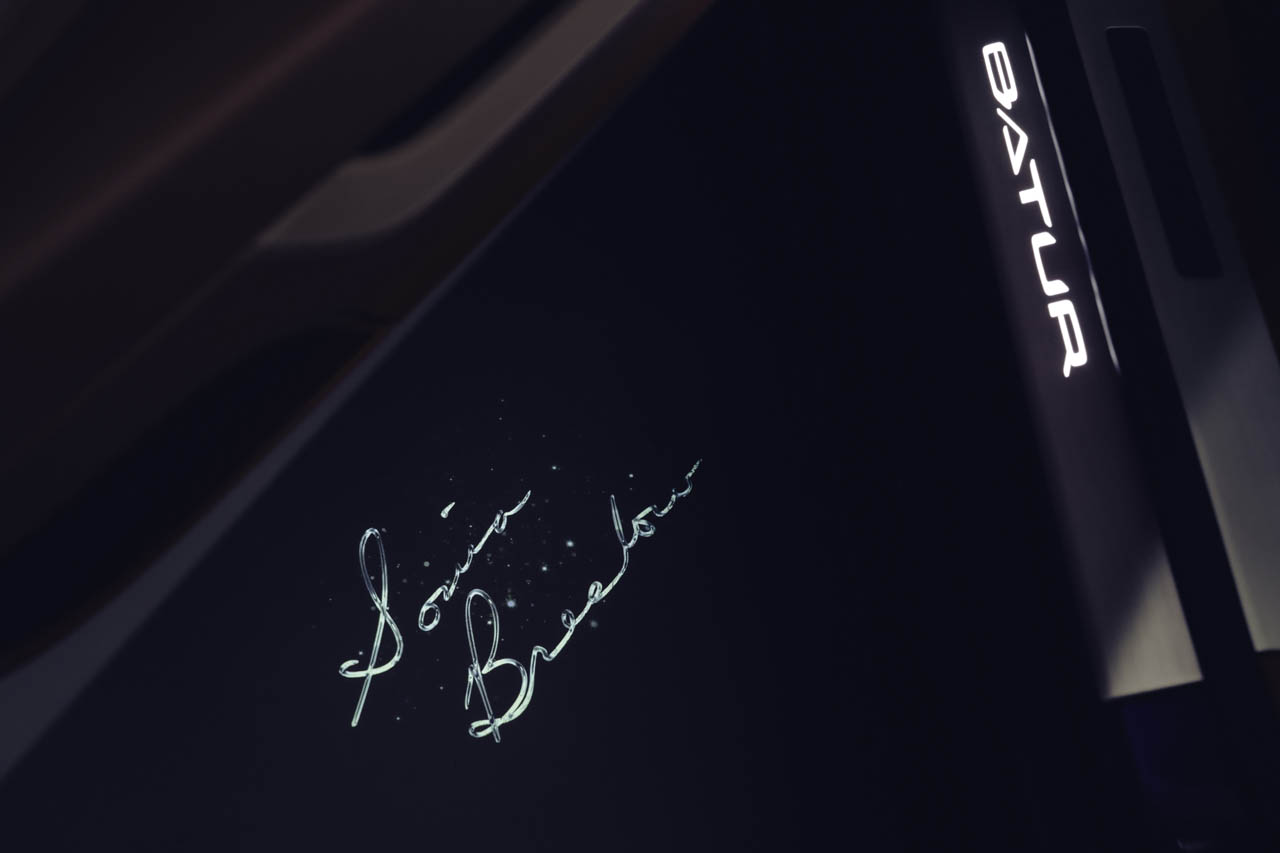 「4つの力」のうちの2つは、その美しいエクステリアに表れている。まず1つ目が、顧客の依頼色を用いた初の3トーン配色だ。バトゥールの象徴的な「エンドレス・ボンネット」のデザインを強調するため、6mmの光沢あるシルバーのファインラインが施され、ボディ全体が洗練されたトリコロール(3色)で構成されている。メインとなる上部には「ブレスロー・ブルー」が採用され、下部のボディカラーに合わせて「ミッドナイト・ブレスロー・ブルー」のピンストライプがボンネットに走る。