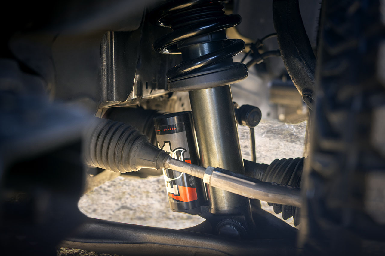 さらに、より高い限界性能を求めるユーザーへ向けて、サスクワッチ・パッケージの内容が強化された。通常は上位のバッドランズ・トリムにおいて複数のオプションを組み合わせるのでなければ得られない「HOSS 3.0サスペンション」と「FOX製インターナル・バイパス・ダンパー」を、このパッケージでは標準装備としたのである。これにより、大きな衝撃を受けても底突きすることなく、強力なダンピング性能を発揮するという。