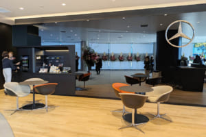 【画像21枚】黒と白のコントラストが美しい最新CI「MAR20X」。巨大ビジョンから29ベイの整備工場まで、メルセデス・ベンツ港北の全貌を見る