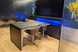 店内には大型ビジョンによるデジタルコンテンツ配信や、モニター完備の商談エリアが設けられ、利便性と体験価値が大幅に向上している。