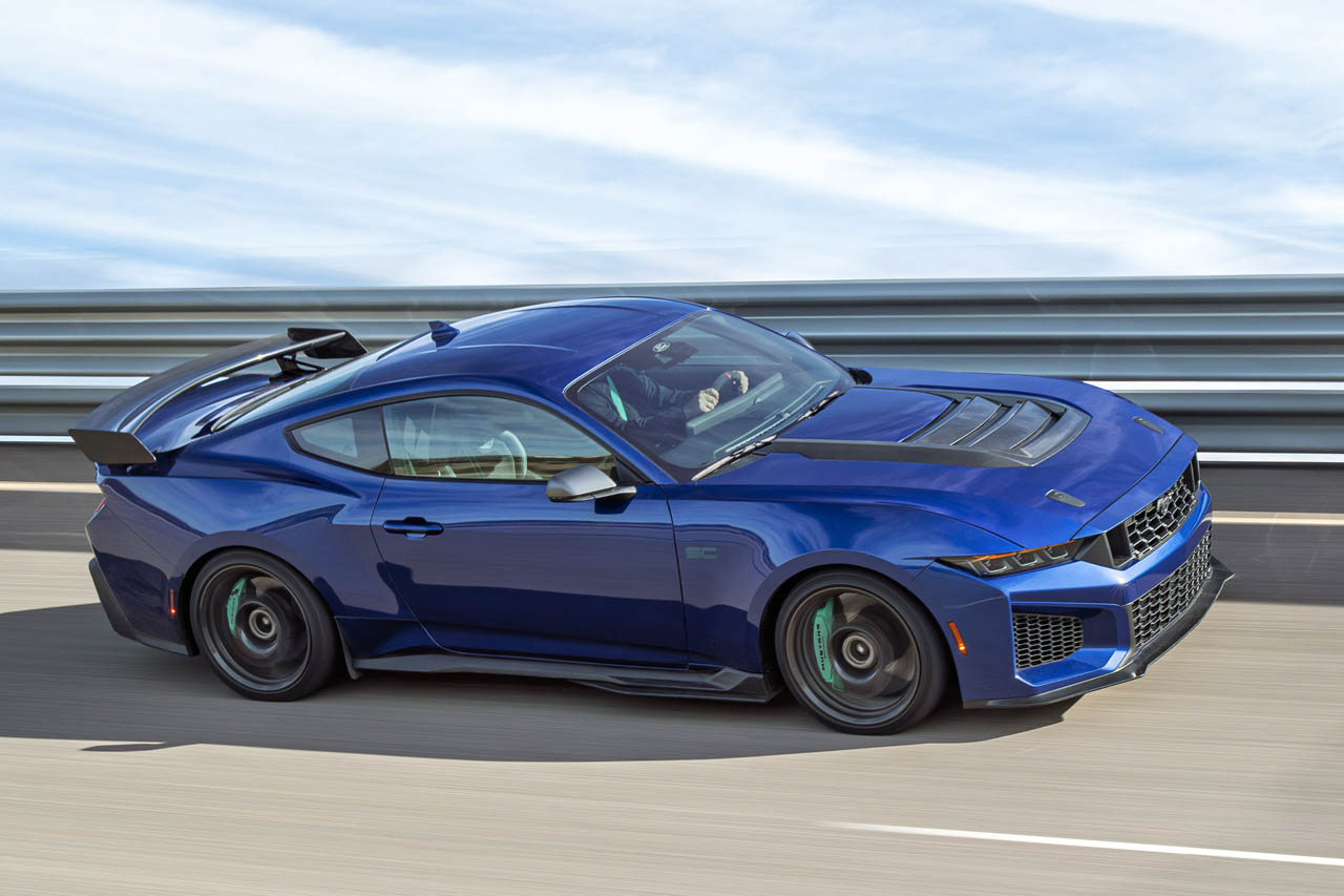特筆すべきは、スーパーカーであるマスタングGTDチームとの技術的な相互作用だ。この協力関係により、マスタング・ダークホースSCの「トラックパック」には、ブレンボ製カーボンセラミック・ブレーキやミシュラン・パイロット・スポーツ・カップ2 Rタイヤといった一級品のコンポーネントが採用された。また、新しいボンネットやカーボンファイバー製ベント、改良されたフェイシアやアンダーボディのベントなどの空力設計も、サーキットでのデータ共有がもたらした成果である。
