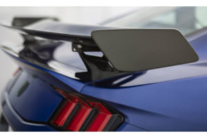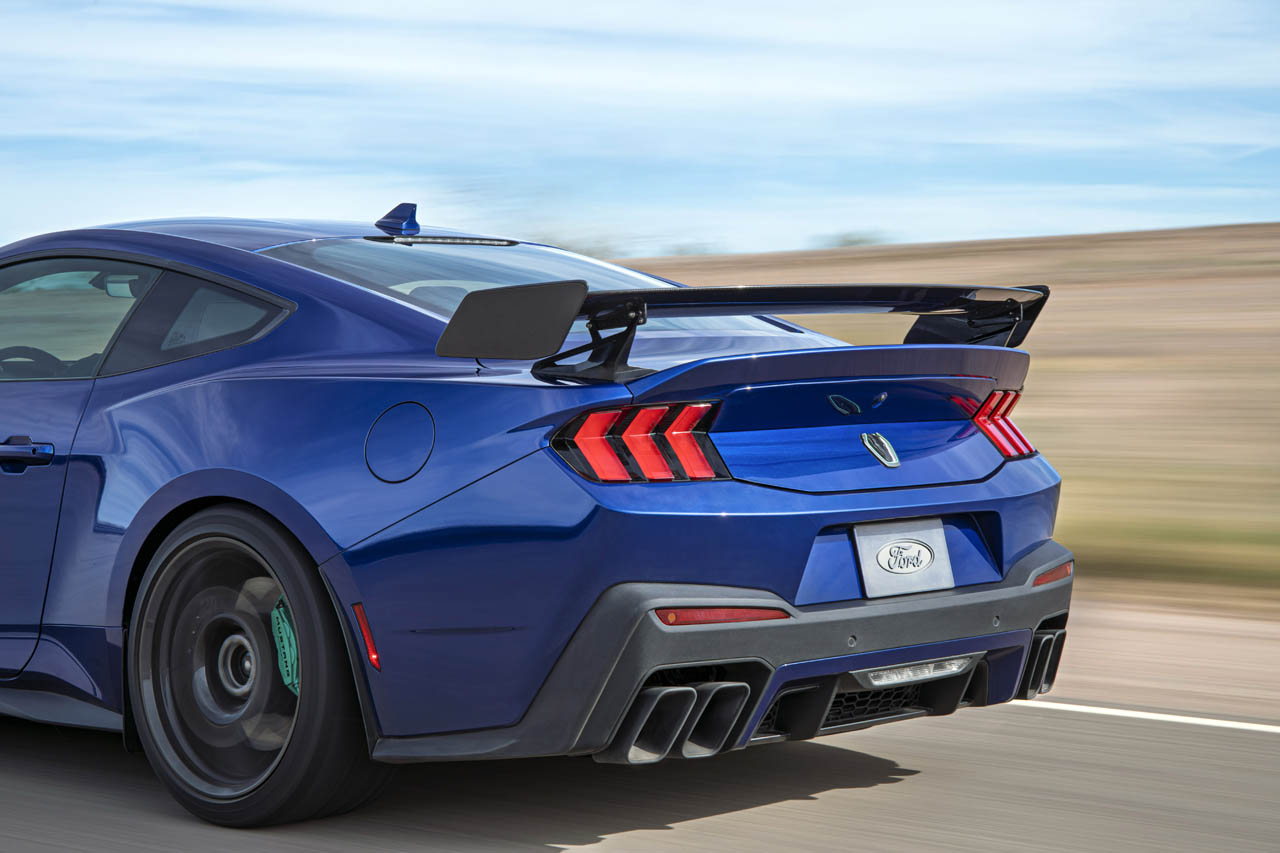 空力性能においても妥協は見られない。新設計のアルミニウム製ボンネットには巨大なベントが設けられ、冷却性能とフロントの空力制御を担う。ベントトレイを取り外した状態では、標準のダークホースと比較して2.5倍ものダウンフォースを発生させる。これにトラックパックのカーボンファイバー製ウイングを組み合わせることで、時速180マイル(約290km/h)走行時には620ポンド(約281kg)という強烈なリアダウンフォースを生み出すことが可能だ。