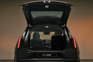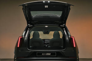 外観では、専用色の「フロストグリーン」が設定され、ステンレススチール製のスキッドプレートや、ブラックアウトされたホイールアーチクラディングが、力強さを強調している。機能面での最大の違いは、地上高だ。標準のEX60に比べて20mm高く設定されており、悪路走破性を高めている。さらにエアサスペンション装着車では、必要に応じてさらに20mm車高を上げることが可能だ。高速走行時には逆に車高を下げ、空気抵抗を低減する機能も備える。