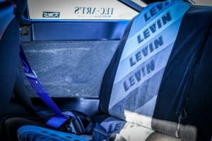 エンジンはAE92後期型に搭載されていた「4A-GE型」をベースに、戸田レーシング製のハイコンプピストンを組み込み、シリンダーヘッドとブロックは面研し、ダミーヘッドボーリングも行っています。カムシャフトも戸田レーシング製のインテークが272度、エキゾーストは264度のものを組み込んでいます。タペットカバーもオリジナルの風合いを再現して塗り直してもらいました。8500回転がレブリミットで、最高出力は150ps+αだと思います。