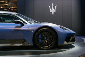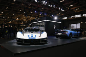 マセラティからは、ブランドの最もラディカルな側面を示す2台が登場した。サーキット走行専用車として62台限定で生産される「MCXtrema」は、740psを発揮するネットゥーノV6エンジンを搭載した、マセラティ史上最も強力なサーキットカーである。パリで公開された車両は、オーナーのために特別に作成された「コルセ」リバリーを纏い、マセラティのスポーツヘリテージとMC12への敬意を表して「77」のナンバーが描かれている。