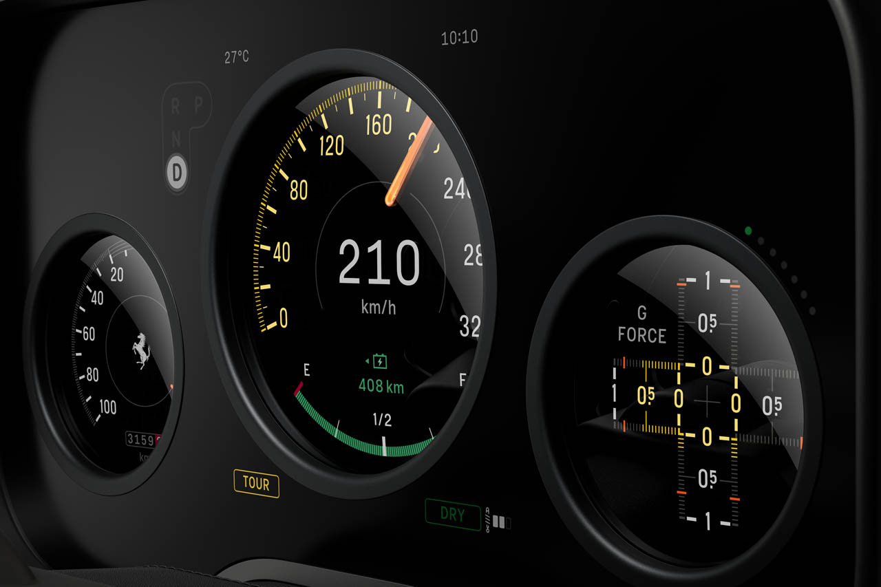特筆すべきは、これらのパフォーマンスがフェラーリ独自の「音」と共に提供される点だ。フェラーリは合成音を使用せず、電動パワートレインの機械的振動を高精度センサーで拾い、それを増幅させることで「本物のサウンド」をドライバーに届けるアプローチを採った。また、バッテリーをシャシーの構造部材として統合することで、従来の内燃機関モデルと比較して重心を80mmも低く設定することに成功しており、ブランド特有の鋭いハンドリングは電動化されても健在だ。