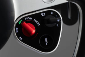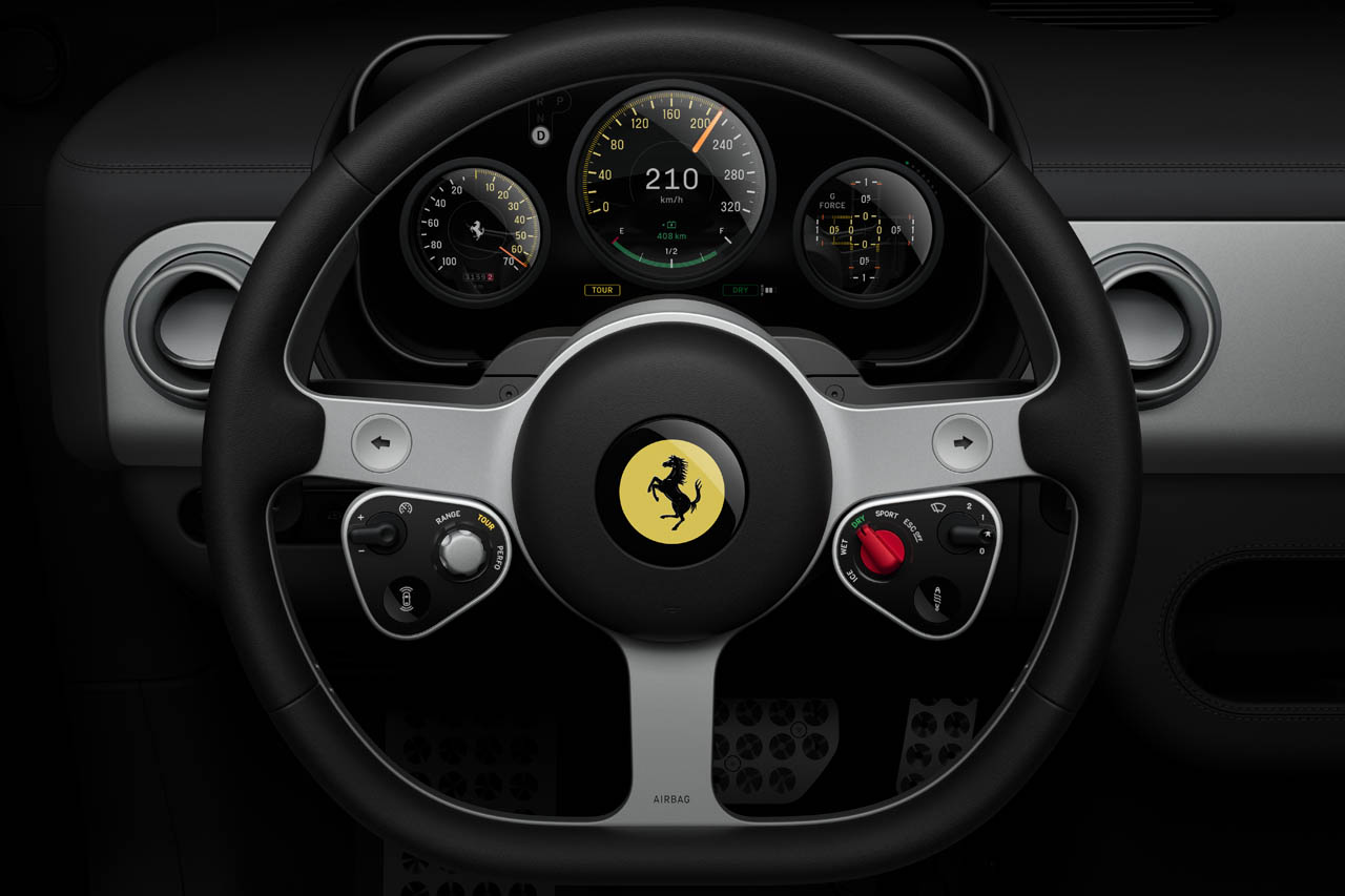 多くのスイッチ類は機械式であり、操作をシンプルかつダイレクトにするよう開発されている。これはクラシック・スポーツカーやF1マシンからのインスピレーションによるもので、重要な機能のみに絞り込まれている。例えばステアリング・ホイールは、1950年代~1960年代の名高いナルディ製木製ステアリングを再解釈したシンプルな3本スポーク形状を採用。そこには2つのアナログ・コントロール・モジュールが配置され、各ボタンは機械的フィードバックと音が調和するよう、テストドライバーによる評価を20回以上重ねて開発された徹底ぶりだ。