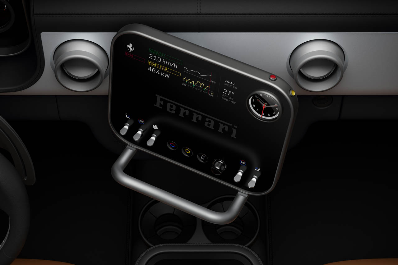 現代のBEV(バッテリーEV)は大型タッチスクリーンに機能を集中させる傾向にあるが、フェラーリ・ルーチェはその潮流に真っ向から異を唱える。インターフェースのデザインにおいて、触覚、明快さ、直感的な意思疎通が重視され、ドライバーと車両との強いつながりを作るために「触れて操作したくなる物理的スイッチ類」が優先されたのである。