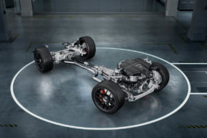 駆動方式には、前後トルク配分を連続可変制御する四輪駆動システム「AMG Performance 4MATIC+」を標準装備する。このシステムは、走行状況やドライバーの操作に応じて、トルク配分を0:100(完全後輪駆動)から50:50まで瞬時に変化させる。通常走行や安定性が求められる場面では四輪を駆動してトラクションを確保する一方、状況に応じてフロントアクスルを切り離し、後輪駆動として振る舞うことで効率と俊敏性を高める。