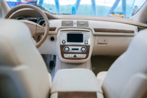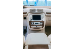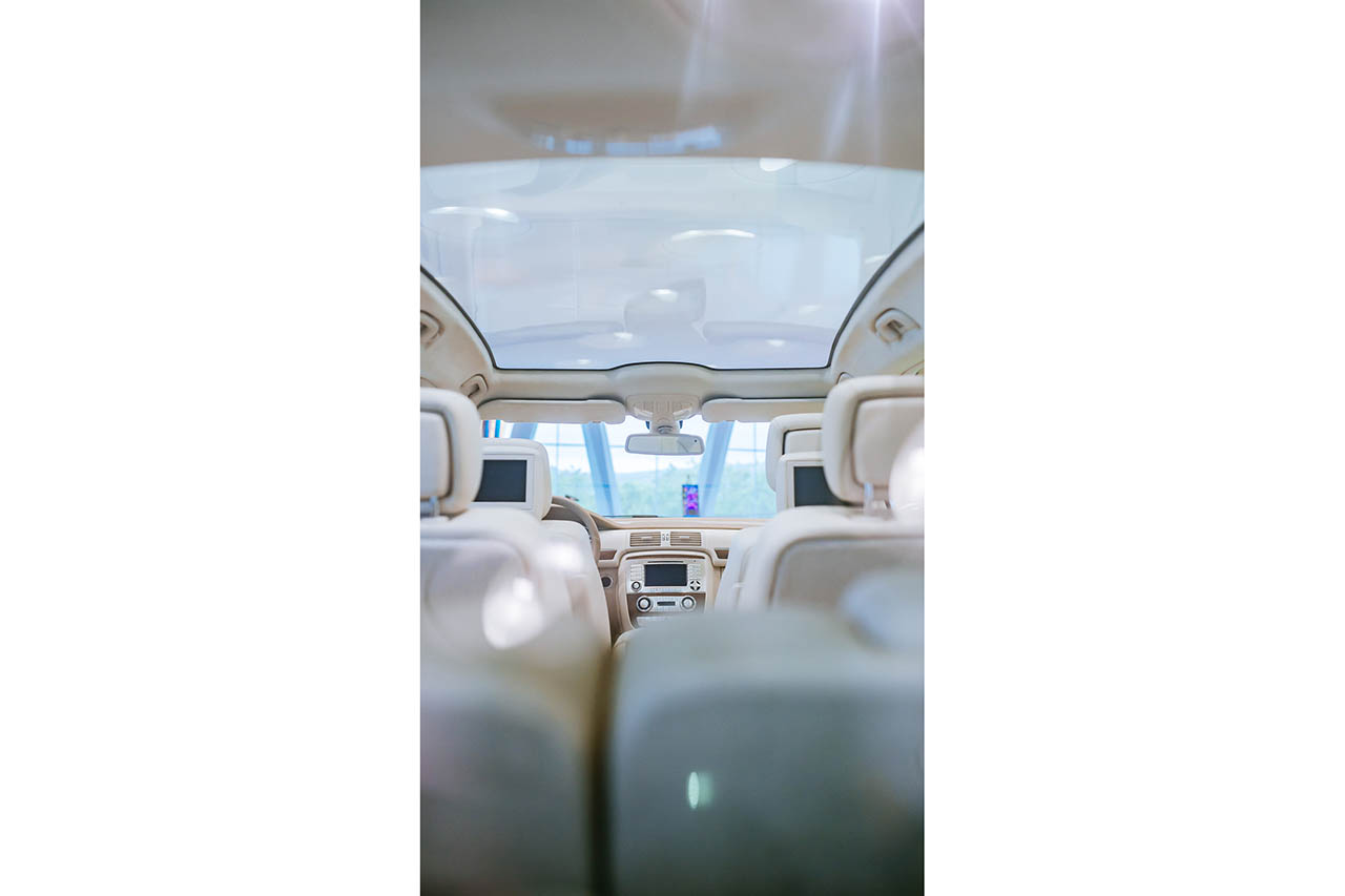 特別展示のテーマである「ヤングタイマー」らしく、搭載されている装備は2000年代当時の最先端技術を象徴している。後部座席に乗る人のために運転席と助手席のヘッドレスト裏にはフラットスクリーンが埋め込まれ、センターコンソールにはDVDプレイヤーが収納されている。これは当時のモバイル・エンターテインメントにおけるトップクラスの技術であり、現代の視点で見れば、当時のライフスタイルや空気感を伝える貴重な歴史的資料とも言える。