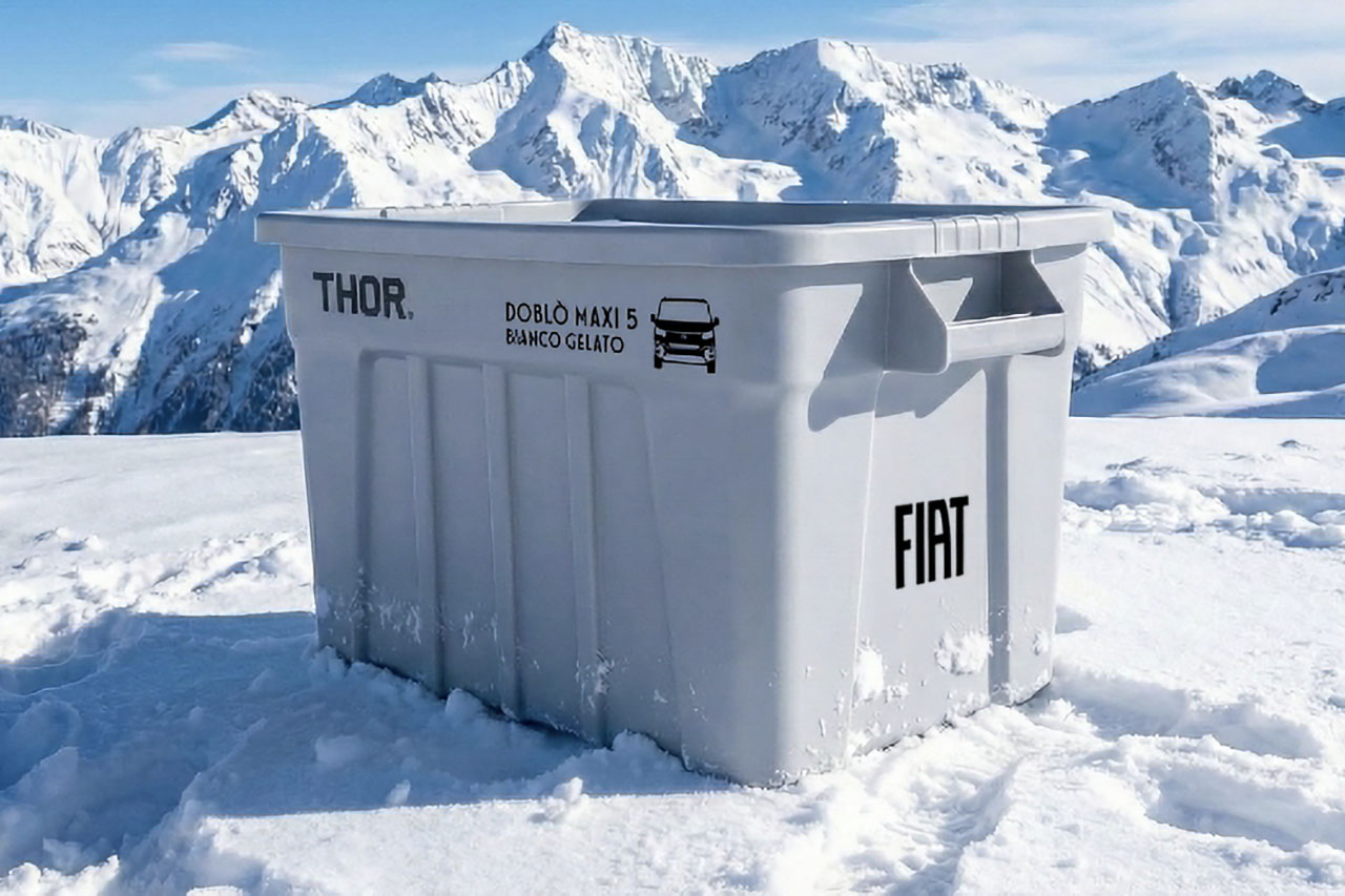 フロントおよびインテリアに装着した専用エンブレムは、耐久性と質感に優れるというハイボスカル素材を使用し、特別感を演出。さらに、車内設置の収納箱としてだけでなくアウトドアなど幅広いシーンでの活躍も想定されているFIAT×THORオリジナルギアボックスが付属する。