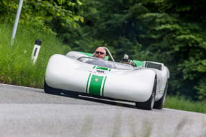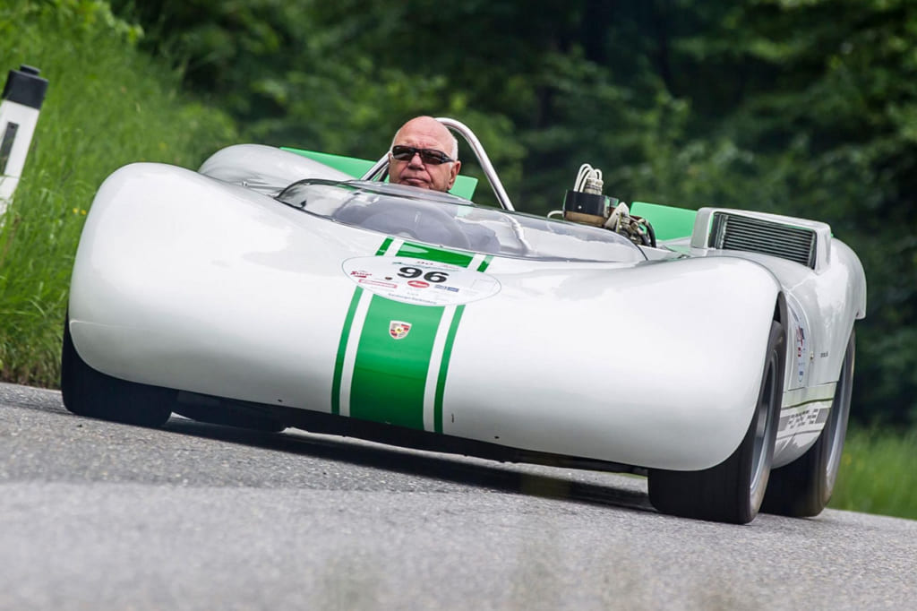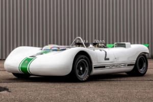 次いでポルシェ909ベルグスパイダー。1968年に開発された、展示車両の中で最も軽量なモデル。当時のヨーロッパ・ヒルクライム選手権の過酷な要件に応えるため、車両重量は400kg未満に抑えられている。アルミニウム製スペースフレームやチタン製コイルスプリングを採用し 、最高出力275psを発揮する2L弱の空冷水平対向8気筒エンジンを搭載。0-100km/h加速は約2.4秒を誇る。
