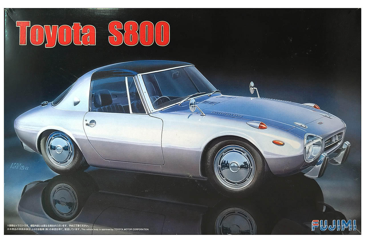 今回制作しているのはこのキット、フジミ製1/24スケール・プラモデル「トヨタS800」、いわゆる「ヨタハチ」。もともとはニットーが1980年代初頭にリリースしたキットで、童友社を経てフジミに金型が移管されており、現在(2026年2月)も入手可能。レースカーやカスタム仕様など、数種類のパッケージがあるが、これはインチアップシリーズで、ノーマルなロードカーのパッケージだ。