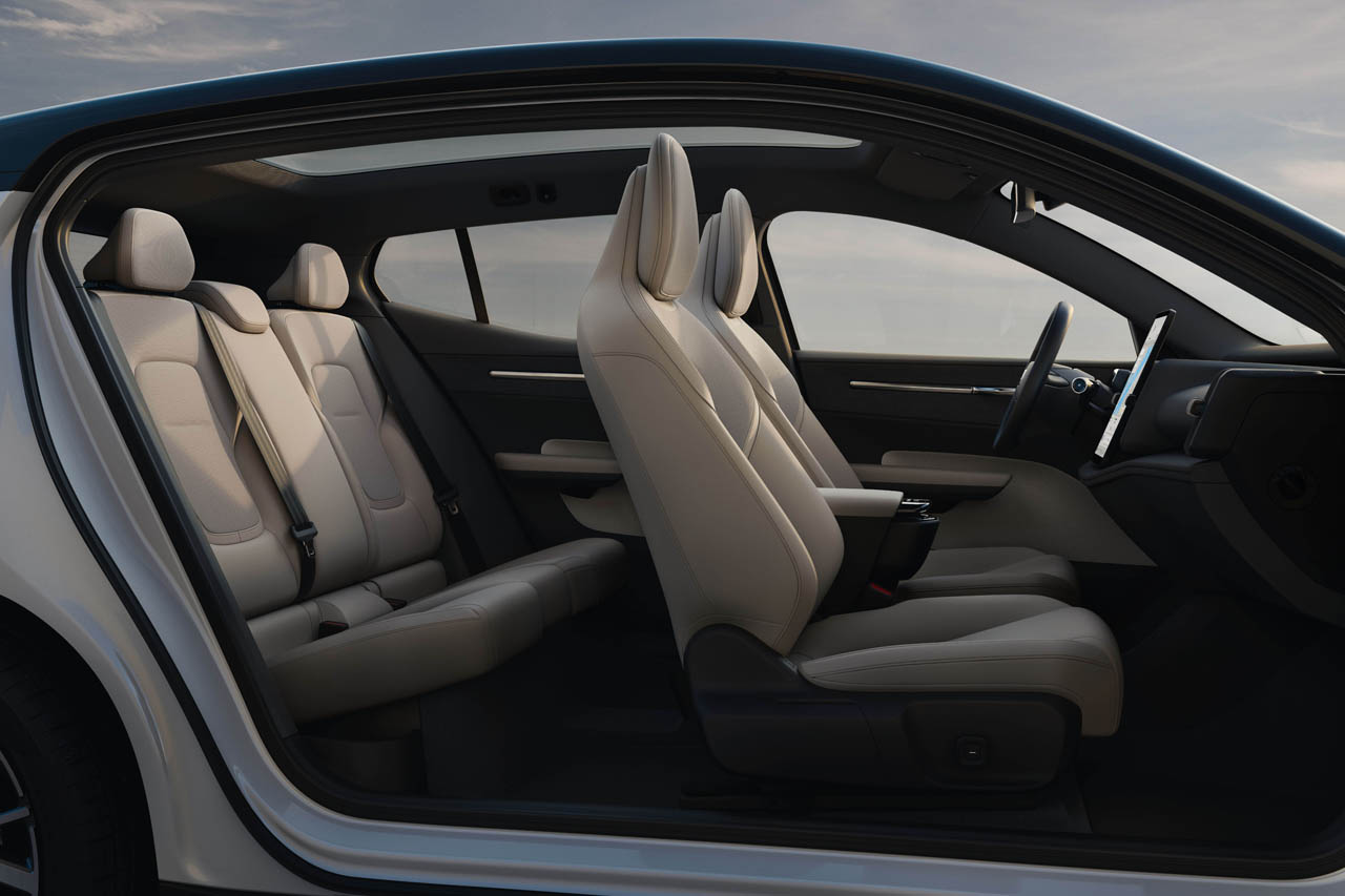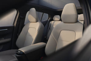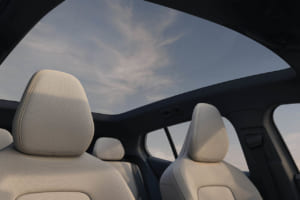 デザイン面においても、EX30には魅力的な2つのプレミアムな内装が新たに追加される。「ハーベスト(Harvest)」と名付けられたインテリアルームは、北欧の夏の終わりの夕暮れにインスピレーションを得ており、温かみのある明るい色調の美学を提供する。明るい色の再生テキスタイルを用いた織物シートや、ペットボトルなどの再生素材から作られた「ノルディコ(Nordico)」シート、エレガントなダークフラックスの装飾、ブラックのヘッドライニングが組み合わされ、現代的で自然な雰囲気を演出している。