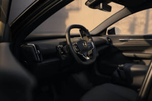 もうひとつの「ブラック(Black)」インテリアルームは、深い黒の色合いを基調とし、わずかにコントラストのあるステッチが施された滑らかなノルディコシートと自然なダークフラックスの装飾が、タイムレスな外観を実現している。この「ブラック」インテリアルームは、拡充されたEX30ブラックエディションでも選択が可能となっている。