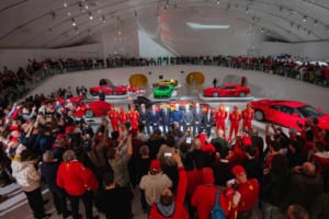 イタリア・モデナのエンツォ・フェラーリ博物館で行われた発表イベントには、同社CEOのベネデット・ヴィーニャ氏をはじめとする首脳陣や、公式チーム「フェラーリ・AFコルセ」のスタッフ、ドライバーらが登壇した。