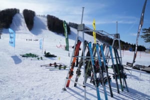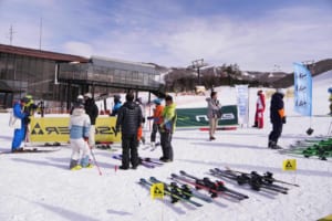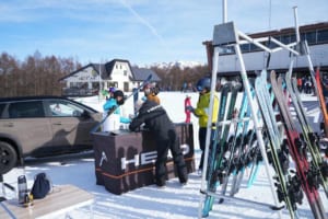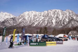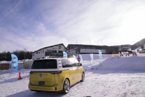 戸隠スキー場のレストハウス前のゲレンデには、日産エクストレイル・ロッククリーク、三菱デリカD:5、アウディA5 TDIクワトロ、ルノー・グランカングーと、その下のスペースにはフォルクスワーゲンID.Buzzを展示。また、ヘッド、フィッシャー、エランの、来シーズンに発売されるニューモデルのスキーを試乗できるエリアにもなっていた。