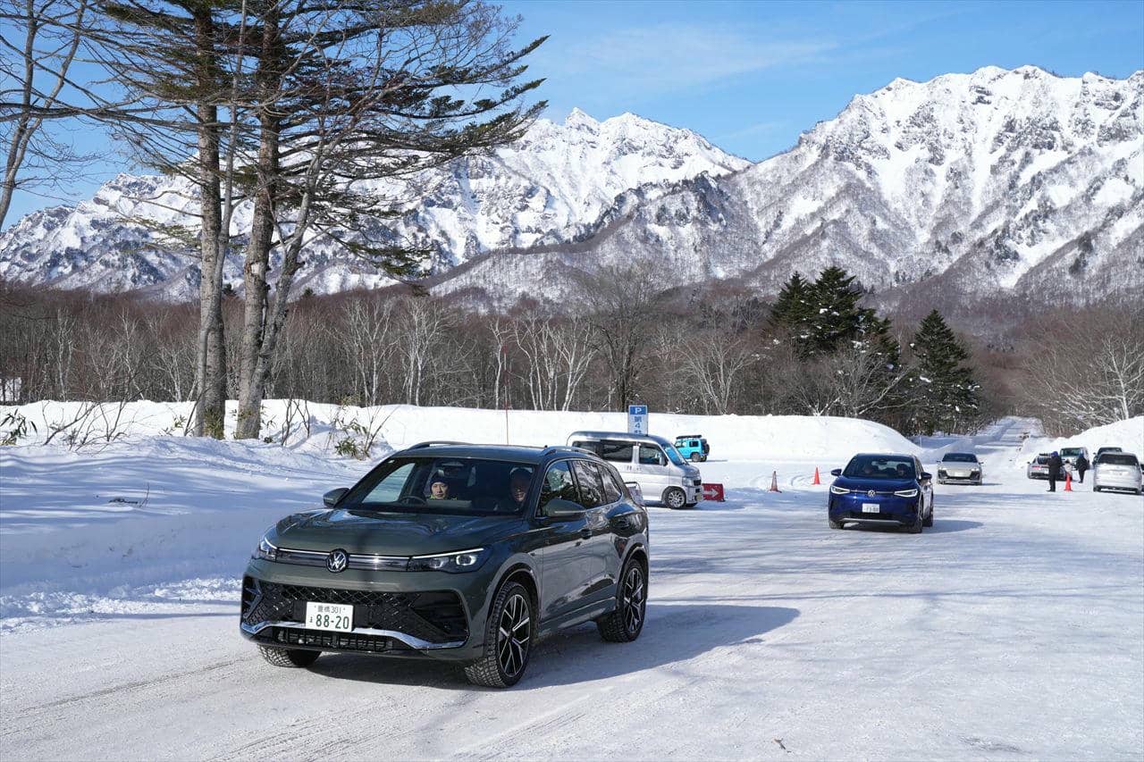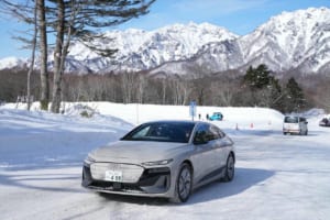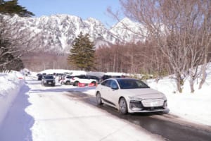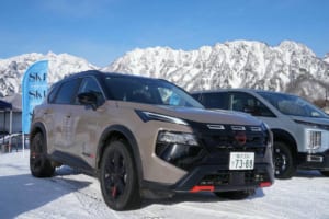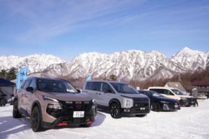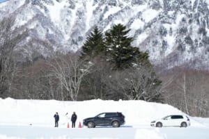 戸隠スキー場周辺の一般道を使用して行われた最新モデル試乗では、4WDやFWD、RWDの駆動形式や、エンジン/電動のパワートレインによる雪上でのドライビング感覚の違いを試すこともできた。試乗コースにはワインディングや登坂路など様々なシチュエーションもあり、雪上でのコーナリング性能やトラクション性能も体感してもらえたようだった。