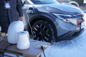 新型日産リーフからの給電による熱々コーヒーのおもてなしも