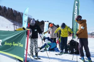 来シーズンに発売されるスキーのニューモデルである、ヘッドの新オールマウンテンモデル「ディスカバリー」と、フィッシャーの軽快で上質なゲレンデクルージングを実現する「カーブ」、エランの新技術であるアクティブ サスペンション ドライブを搭載した「エース」をいち早く試乗できるコーナー。各メーカーの担当者が新技術やモデルのコンセプトや雪上での楽しみ方を解説しつつ、長沼將馬氏(ヘッド)、栗山未来氏(フィッシャー)、円浄 岳氏(エラン)の各所属プロスキーヤーが「そのスキーの最も輝く滑り」を先導。参加者はプロのラインをトレースしながらその性能を体感した。