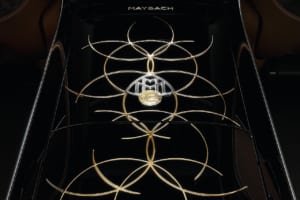 Cピラーには専用のエンブレムも用意。マイバッハ・エンブレムに加え、V12エンジンのシリンダー配置に着想を得たというV字型パターンの彫刻(24金仕上げ)のインレイと、24金製メダルリングで構成された本モデル限定ロゴバッジが装着される。さらに、マイバッハ・ツェッペリンDS8のフードオーナメントに着想を得たという、「12」をあしらったクロームとゴールドのメダルを組み合わせている。