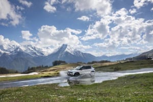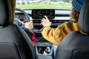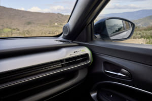 AUTOモードでは、0〜約30km/hにおいて電動モーターによるFWD(前輪駆動)走行、約30〜90km/hにおいてはオンデマンドAWD(必要時のみ後輪に駆動力を付与)、そして約90km/h以上では、効率を優先した前輪駆動へ切り替わり、高速走行時も安定した走行を実現するとのこと。SNOWやSAND/MUDを選択した場合、0~約30km/hでは常時AWDに設定され、必要に応じた走破性を確保。
