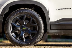 このモデルではボディカラーに白色の「スノー」を採用、ボンネットにはAvengerのサインを含む専用フードデカールをあしらい、フロントまわりにはグリーンのアクセントを配している。さらにブラックペイントルーフによって精悍な個性を強調した、特別な装いが特徴だ。