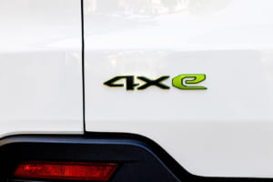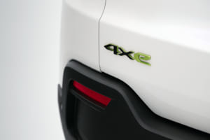 4xe Hybridにはよりオフロード指向のデザインと装備も採用されている。例えばフロントバンパーは専用デザインで、フェイシア下部はアプローチアングルをBEVモデル比で2度拡大した形状としたうえ、傷が目立ちにくいというモールドインカラー素材を採用。フォグランプはBEVモデルよりも高く、外側寄りに配置、視認性向上を図った。ルーフレールやリア牽引フック、全天候対応のオールシーズンタイヤも標準装備する。