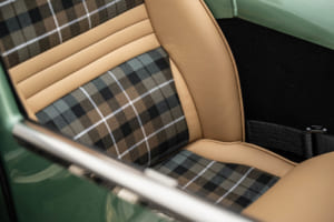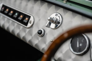 室内空間にも歴史へのリスペクトが込められている。ダッシュボードには手作業によるスピン目仕上げのアルミニウムデザインが施され、スミス製のクロームメーターやソリッドメタル製のマスターカットオフスイッチ、ポリッシュ仕上げの木製クイックリリース式モトリタ・ステアリングホイールが備わる。