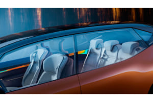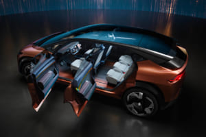 全長4.5m、全高1.5mのワンボックスカーであるこのモデルは、流れるようなラインと広々とした室内空間を兼ね備える。全面ガラス張りのルーフやフレームレスドアなど広大なガラス面積を誇り、光に包まれた開放的なキャビンを作り出している。内装は技術と室内空間を直感的に再構成できるモジュール式の設計が特徴だ。