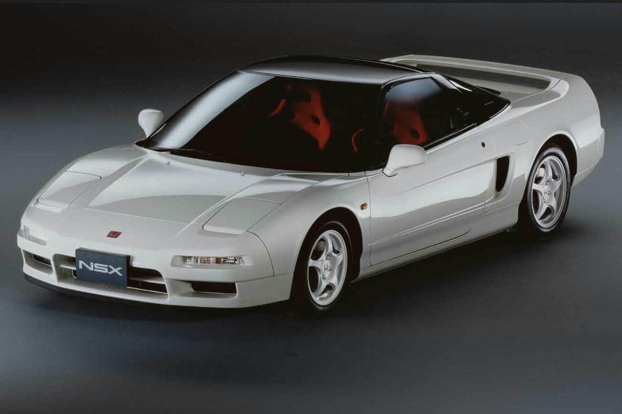 ホンダのNSXは、世界第一級の運動性能を目標に量産車世界初のオールアルミボディや高性能3.0L V型6気筒DOHC VTECの自然吸気エンジン、アルミ鍛造アームやコンプライアンス・ピボットが採用されたインホイール型ダブルウイッシュボーンサスペンションに前後異径タイヤを備え、当時の国産車としては驚きの800万円超という車両価格で1990年に誕生しました。