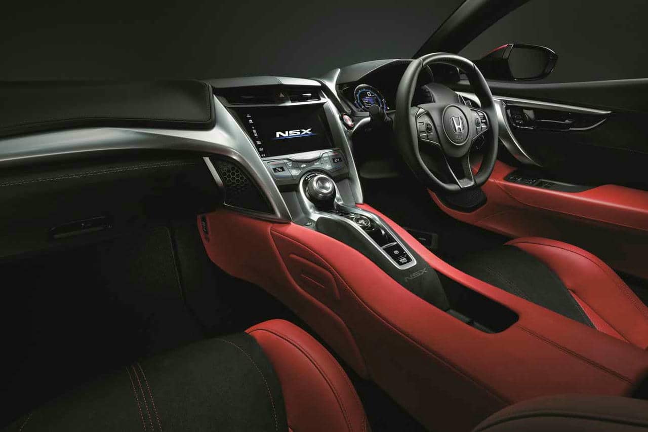 高効率且つ高出力の3モーターハイブリッドシステム『SPORT HYBRID SH-AWD®(Super Handling – All Wheel Drive)』としてミッドシップにレイアウトされたパワーユニットは、新開発された3.5L V型6気筒ツインターボエンジン(ボア×ストローク=91.0mm×89.5mm、圧縮比=10.0)に高効率モーターと9速DCT(デュアル・クラッチ・トランスミッション)、トルクベクタリングを可能とするフロントの左右独立モーターが組み合わせられ、システム最高出力581ps、最大トルク646Nm(65.9kgm)のハイパワーを4輪駆動、リニアで力強い加速と優れた回頭性能を実現しています。