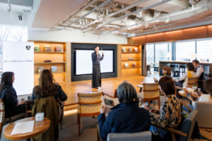 日本初開催となったランボルギーニの女性イベント「#SheDrivesaLambo」。スタートとなる代官山T-siteにて。