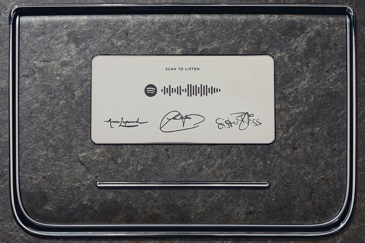 また、シスター・ブリスのアイデアにより、ベントレー初となる「サウンドウェーブ(音波)」の刺繍がシートやドアに施された。さらに、ドアを開けると、足元にサウンドウェーブをモチーフにしたアニメーションが投影されるという特別な演出も備わっている。アナ・ラップウッドはエアコンの吹き出し口を操作する「オルガンストップ」に着目し、これを24Kゴールドで仕上げるよう指定した。センターコンソールには3人の署名と、彼女たちが厳選したSpotifyのプレイリストへ繋がるコードが刻印された銘板が配置されている。