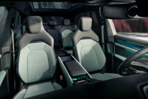 このパッケージでは、エクステリアカラーのミスティックグリーンメタリックとの調和を狙ったカラーと素材の組み合わせにより、モダンで高級感のある雰囲気を演出する。ブラックとデルガダグリーンのツートンレザーインテリアが中心となり、ドアトリムや14way調節機能付コンフォートシート、シートベルトにこのカラーを採用。
