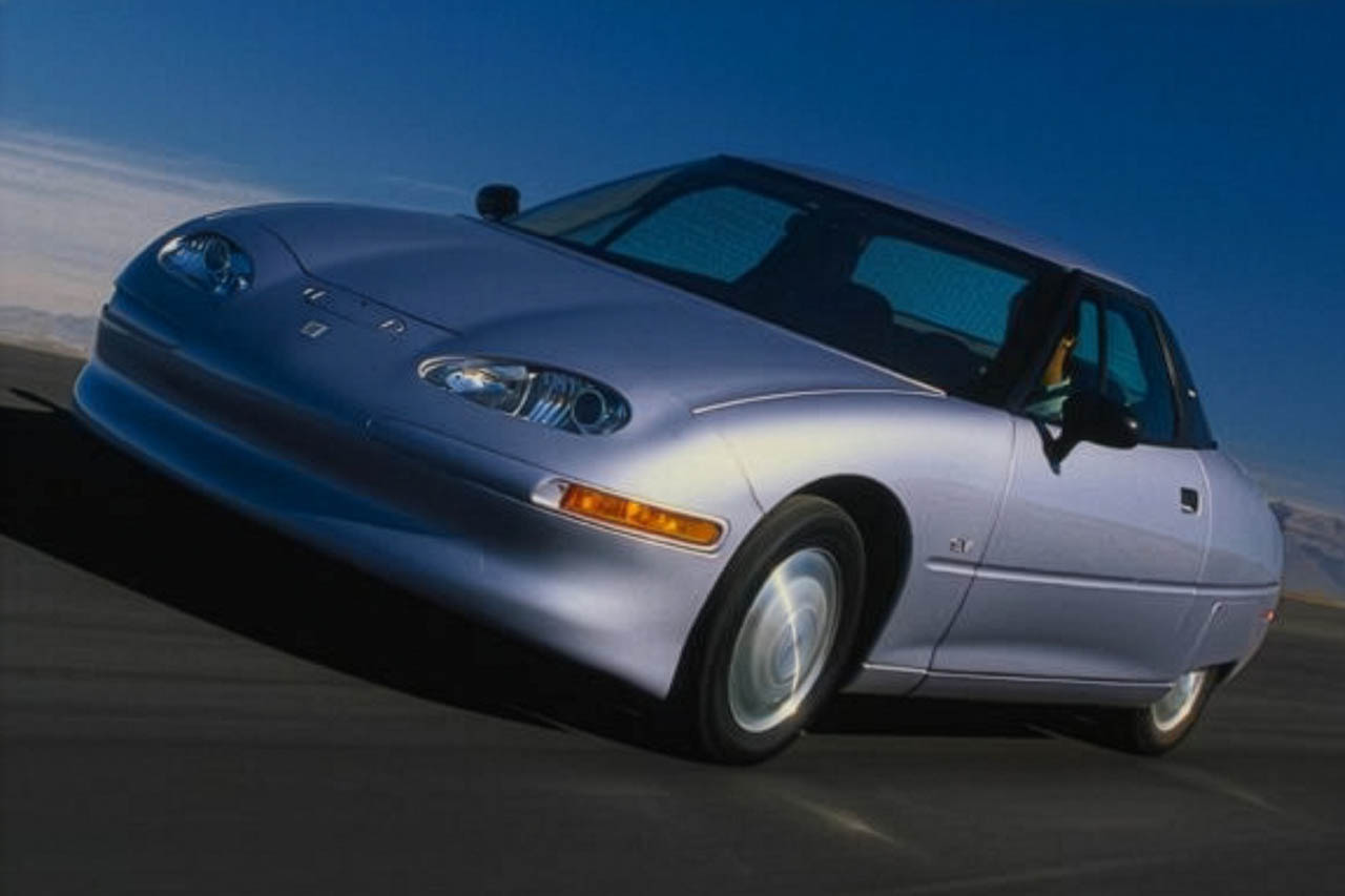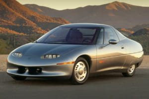 1997年に登場したEV1は、既存の車両の改造ではなく、電気で走ることを前提にゼロから設計された、大手自動車メーカー初の専用電気自動車である。そのルーツは1990年に発表されたコンセプトカー「インパクト」に遡り、ミシガン州ランシングの専用施設で約1000台が製造された。
