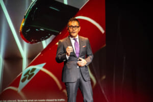 続いて登壇したステランティスジャパンの成田 仁代表取締役社長は、アルファ・ロメオブランドが昨年導入した新型コンパクトスポーツ「ジュニア」の成功などにより、前年比171%という輸入車ブランドでトップクラスの成長を記録したことを明かした。