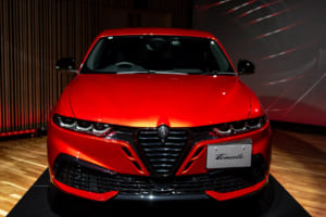 「効率や利便性が重視される時代であるからこそ、数字として表れる性能やスペックだけではなく、美や官能、そして情熱といった人の心を揺さぶる感性の体験がより求められています」と力説。「ジュニアが生み出したアルファ・ロメオへの熱狂を、このトナーレがさらにリイグナイト、再点火いたします」と成田社長は語り、この新型トナーレが同ブランドのさらなる成長を牽引する中核モデルであると宣言した。