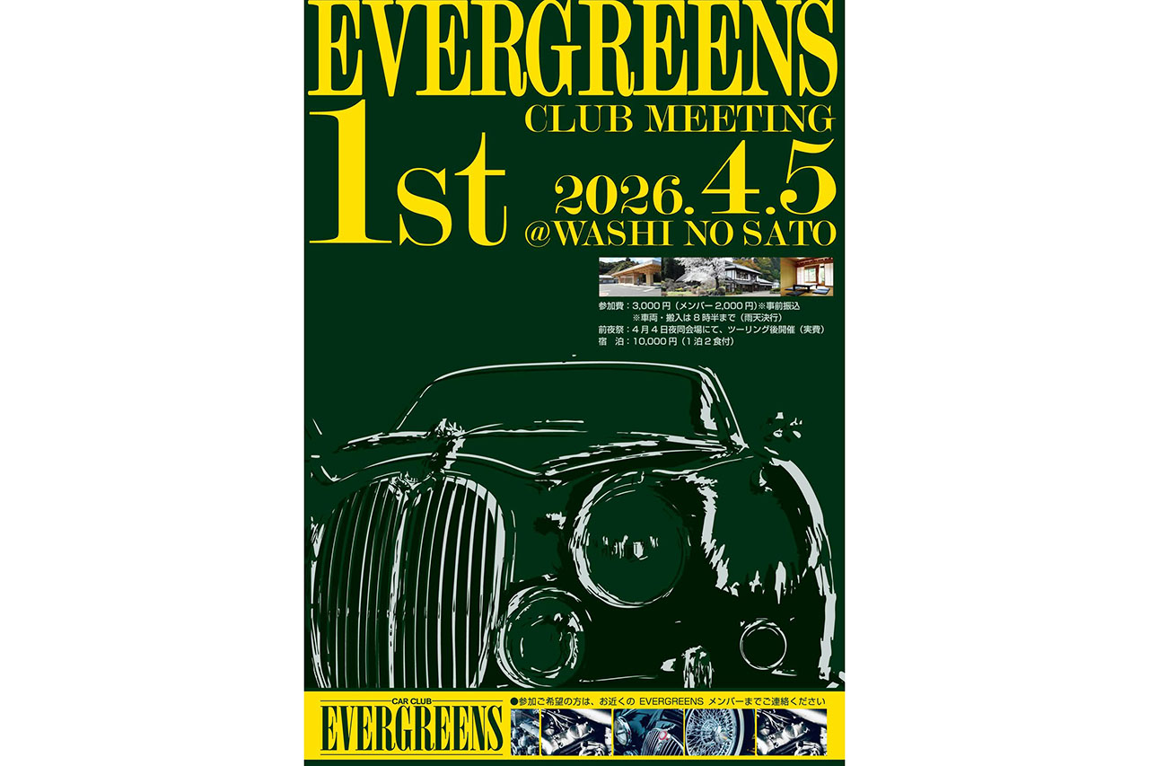 昨年創立50周年を迎えた老舗英国車クラブ「EVERGREENS(エヴァーグリーンズ)」が、2026年4月5日、埼玉県・東秩父村の道の駅「和紙の里ひがしちちぶ」(埼玉県秩父郡東秩父村御堂441)において、同クラブ初となる、イギリス車によるイギリス車好きのイベント「EVERGREENS CLUB MEETING」を開催する。