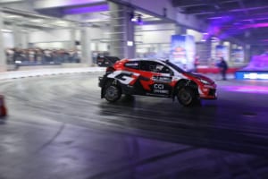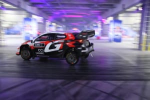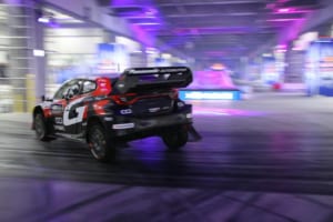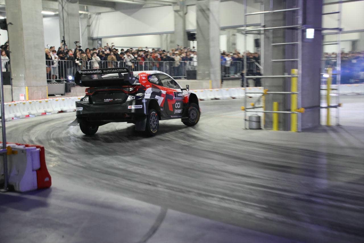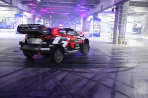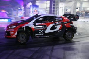 さらに、WRCトップ選手の勝田貴元も実戦で使用する「GR ヤリスラリー1」でドリフト走行を行い、ハイスピードな走りで優勝ドライバーとしての貫禄を見せつけた。ファイナルアクションでは屋外スロープを利用し、勝田のマシンを筆頭に15台が登場。トップドライバーたちによる9台連結ドリフトなど、ここでしか見られないパフォーマンスが約5,000人の観客を熱狂させた。