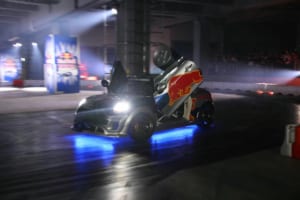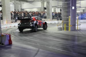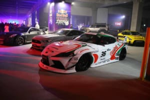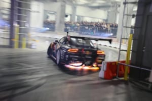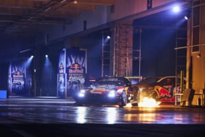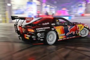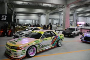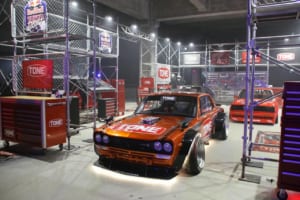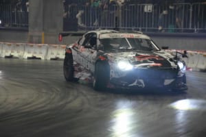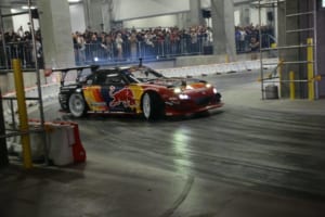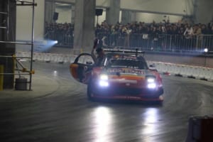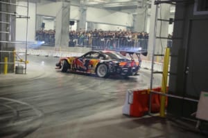 特設のインドアドリフトコースでは、ドリフト界のレジェンドであるマッド・マイク・ウィデットや注目の若手・箕輪大也が、日本のドリフト文化の礎を築いた織戸学と夢の共演を果たした。コンクリート製のスリッピーな路面と柱が並ぶ緊張感あふれるステージにおいて、ドライバーたちは確実なマシンコントロールを披露した。