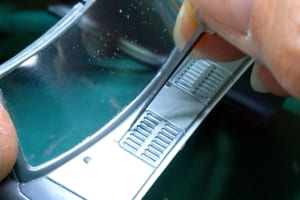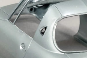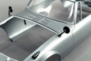 この他、フェンダーアーチの縁を薄く削ったり、ボディ表面に一体モールドされているディテールを別体化したりしたが、これらはすべて「自動車らしさ」の記号を加える工作である。また、完成後に脱落や破損が起こりやすいワイパーとフェンダーミラーには、取り付けの強度を上げる工夫を加えた。
