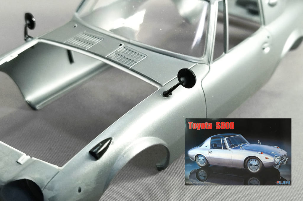 この他、フェンダーアーチの縁を薄く削ったり、ボディ表面に一体モールドされているディテールを別体化したりしたが、これらはすべて「自動車らしさ」の記号を加える工作である。また、完成後に脱落や破損が起こりやすいワイパーとフェンダーミラーには、取り付けの強度を上げる工夫を加えた。