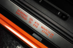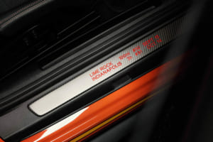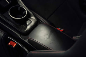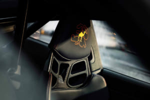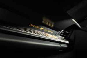 また、1970年代のレースシーンを象徴するタバコ広告のデカールは、現代のコンプライアンスを考慮してあえて引き継がれていない。その代わり、象徴的なラクダのマークや各サーキットのアウトラインが、特注の刺繍入りヘッドレストやセンターコンソールなど、インテリアの各所に繊細なディテールとして組み込まれた。ドアのロゴプロジェクターからは、レーシングカーを運転する禁煙したラクダの姿が地面に照らし出されるという遊び心も取り入れられている。