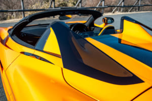 マクラーレンの新生スーパースポーツカーメーカーとしての歩みは、もう15年を数える。カーボンモノコックボディを持つ2シーター・ミッドシップの量産ロードカーとして脚光を浴びたMP4-12Cに始まった。その後、2014年には650Sへ。さらに2017年には第2世代の720Sへとバトンタッチした。2023年には、いまへと続くこの750Sへ進化している。750Sスパイダーはそのオープントップ版だ。強固なカーボンモノコックボディから小さなルーフパネルを外しただけなので、ボディの強さには何ら影響を与えない。