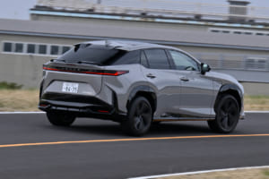 一方で、BEVの差別化に明確に成功していると感じたのがレクサス「RZ550e “F SPORT”」だ。新たに搭載された「ステア・バイ・ワイヤ」は、TVゲームなどで実車とは異なるインターフェースに触れてきた機会の多いドライバーなら、それほど違和感を覚えないだろう。筆者自身も初乗りですぐに順応できた。とはいえ、気になるのは駐車場や狭い路地などで切り返しを多用するシーンでの使い勝手であり、そちらはいずれ試してみたい。ただ、アクセルを踏み込めば圧倒的な加速感が押し寄せ、EVにおけるスポーツドライビングのひとつの回答を垣間見た気がした。