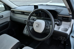 今回の6台の中で、個人的に最も「おっ!」と感心し、読者にお勧めしたいと感じたのが、ホンダ「N-ONE e:」と、今回はステアリングを握らなかったがすでに試乗したことのある日産「サクラ」だ。ホンダはN360から続く「手の届くEV」として、N-ONE e:を開発したという。